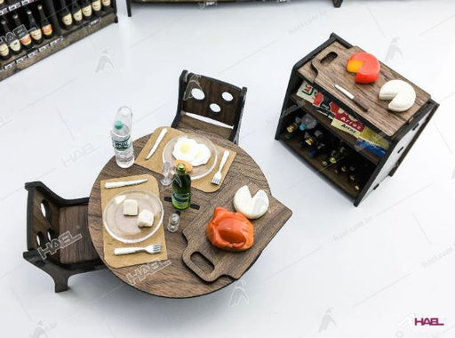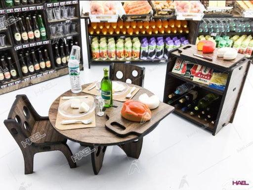 View full detailsDiorama Acrylic Realistic Miniature Dinner Set for Two + Cellar Cupboard Hael