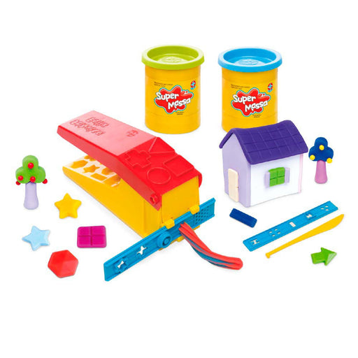 É a fábrica de alegria! Vem com uma prensa com 14 moldes diferentes e acompanha 2 réguas com mais de 10 aberturas diferentes para a criança se dive...