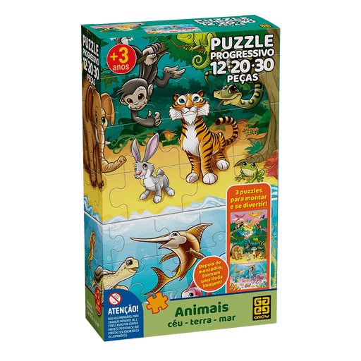 Puzzle Progressivo Animais / Céu, Terra e Mar / Puzzle Progressive Animals / Sky, Earth and Sea - Grow