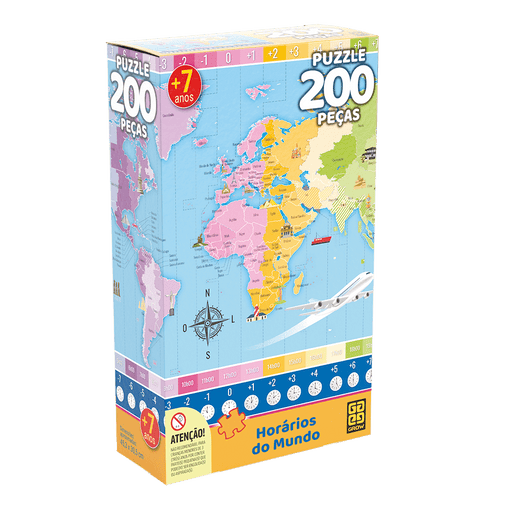 Puzzle 200 peças Horários do Mundo / Puzzle 200 World pieces of the world - Grow