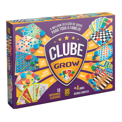 A melhor seleção de jogos para toda a família! Cartas, dados, tabuleiros e muito mais esperam por você no Clube Grow. Um superkit com 10 jogos clás...
