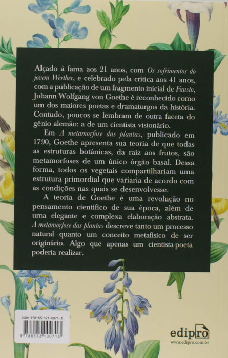 A metamorfose das plantas descreve tanto um processo natural quanto um conceito metafísico de ser originário. Algo que apenas um cientista-poeta poderia realizar. Detalhes do produto