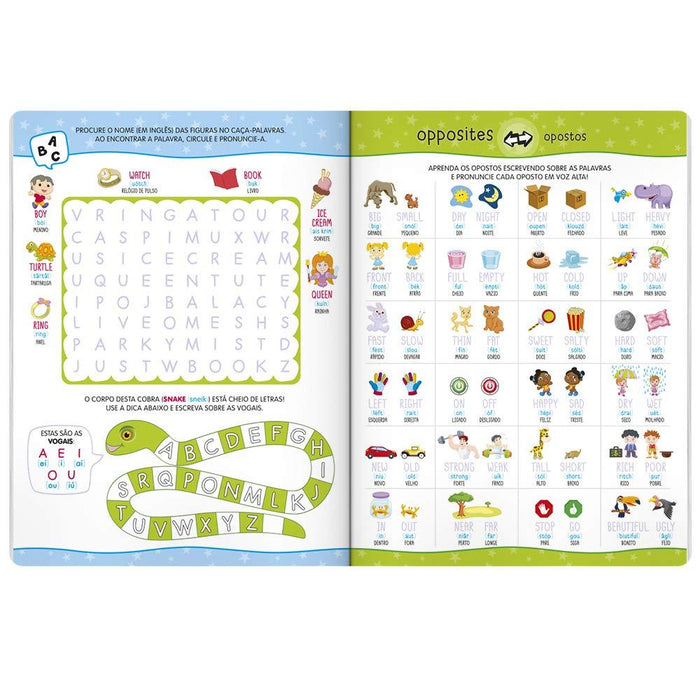 • Volume 1: Alfabeto, Opostos, Animais, Números, Cores e Formas.