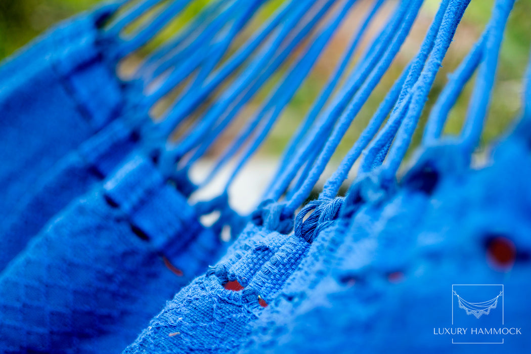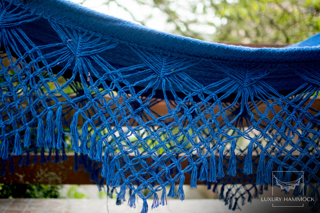 Blue Luxury Hammock with macrame - 14ft x 5ft - Brazilian Premium Double Handmade w/ Natural Cotton