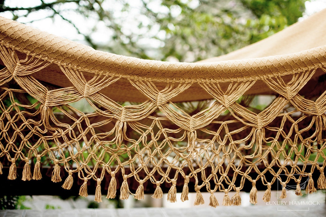 Brown Luxury Hammock with macrame - 14ft x 5ft - Brazilian Premium Double Handmade w/ Natural Cotton