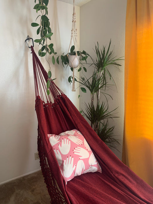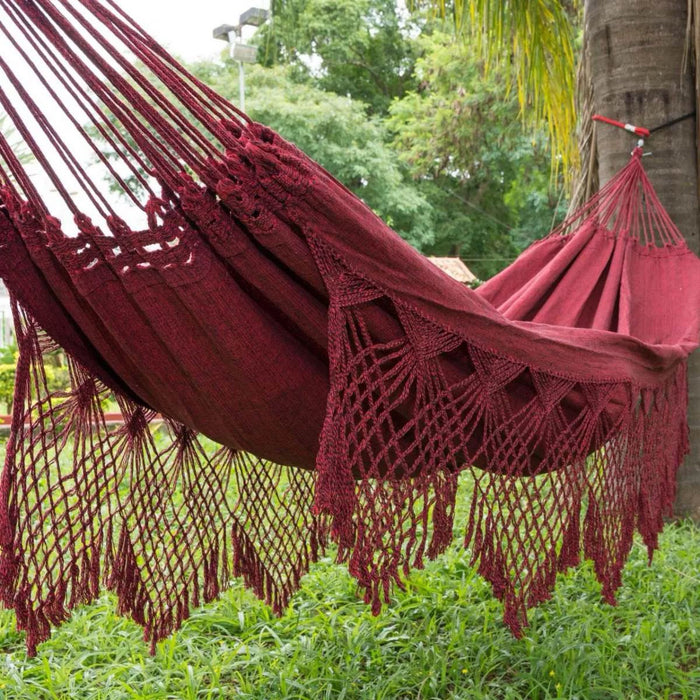 Red Luxury Hammock with macrame - 14ft x 5ft - Brazilian Premium Handmade w/ Natural Cotton