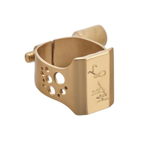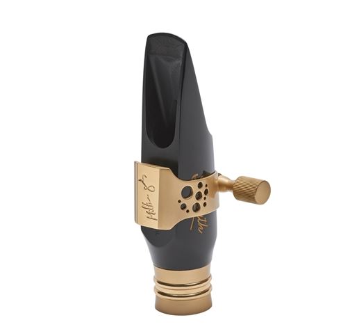 The mouthpiece finish is polished to a high gloss and the ring and clamp have a satin gold finish with shiny gold details.