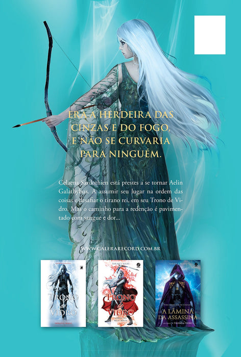 Misto de Assassin's Creed e Game of Thrones, a história de Celaena Sardothien, uma assassina a serviço de um rei tirânico, é uma fantasia épica repleta de ação, intriga e cenas de luta inesquecíveis. No terceiro livro da saga, Herdeira do fogo, Celaena ressurge das cinzas ainda mais forte e letal.Chegou a hora de abraçar sua verdadeira herança e reivindicar a coroa de Terrasen. Agora é a vez do suor e das lágrimas, do sangue e do sacrifício. A justiça mais uma vez ocupará o trono do cervo branco, o Senhor do Norte.Presa ao juramento de sangue feito a Nehemia, Celaena procura a rainha feérica Maeve para aprender os segredos da própria magia. Enquanto treina com Rowan, um príncipe que leva a jovem aos limites da exaustão física e emocional.Mas infelizmente não há tempo para ceder às suas inseguranças, a hora para dúvidas é passada, pois Celaena descobre que uma batalha de proporções épicas se avizinha. Uma que pode escravizar a terra.Em Forte da Fenda, o príncipe Dorian também tenta entender a magia, com o auxílio da curandeira Sorscha, que rapidamente se torna mais que amiga.Mas ela também guarda um segredo, que pode colocar o príncipe herdeiro em grave perigo. E ele não pode contar com o amigo Chaol, ocupado em descobrir mais sobre os rebeldes e o Lobo do Norte, Aedion, primo de Celaena.Nas distantes montanhas Canino Branco, as bruxas do clã Dentes de Ferro treinam enormes serpentes aladas para os exércitos do rei. Em meio a esse cenário, Celaena se equilibra entre os vivos e os mortos, humanos e feéricos, enquanto seu mundo caminha para a guerra. Agora, a vitória depende de Celaena encontrar coragem para enfrentar tais perigos, além de seus próprios demônios, e fazer a escolha mais difícil da sua vida.Este livro é tudo o que você deseja de um livro no meio da série. Focado nos personagens, mostra quem eles são, como chegaram aqui e para onde estão indo. Se você acha que amou os dois primeiros livros, será arrebatado de vez por Herdeira do fogo.Detalhes do produto